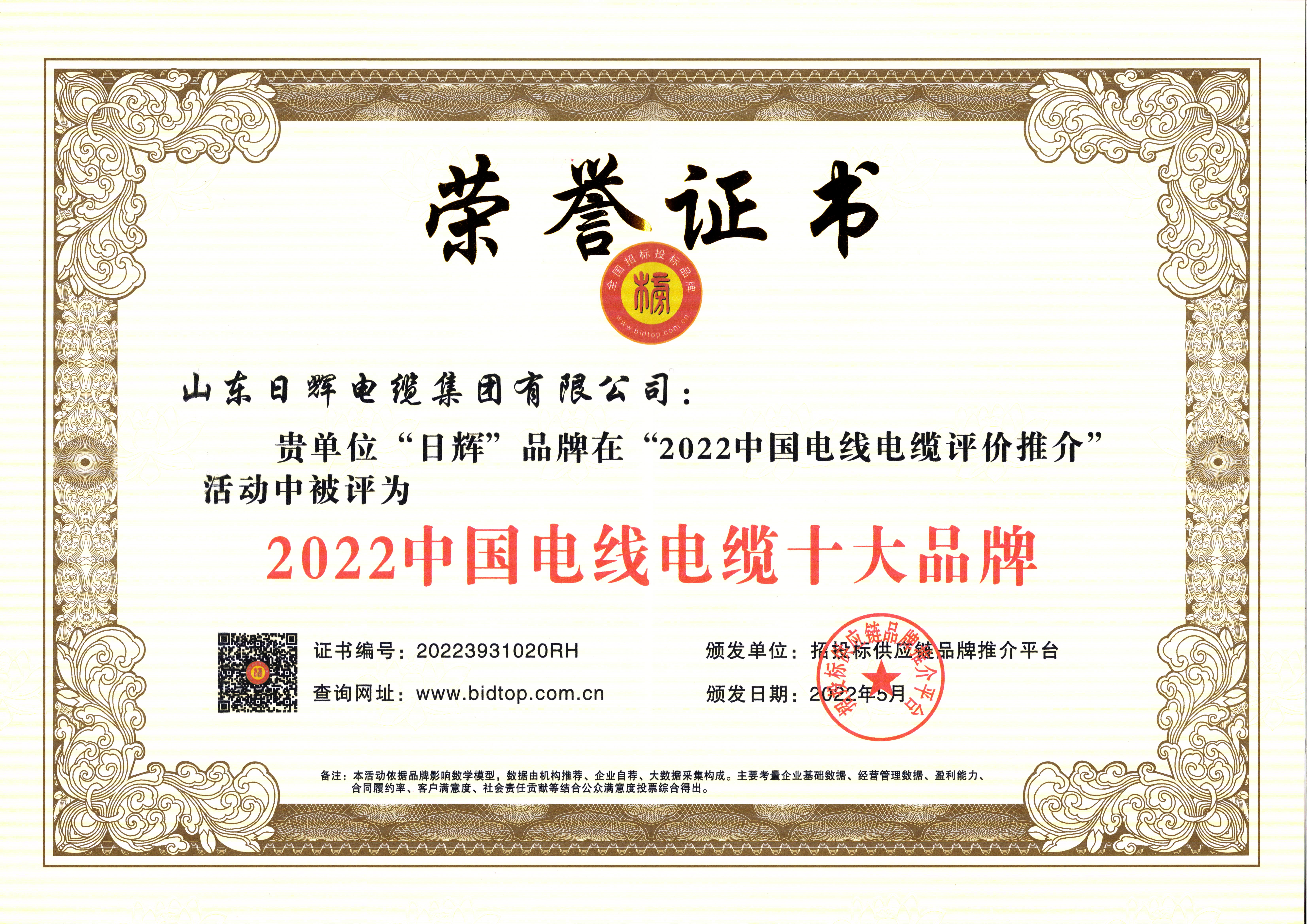 陽谷電纜參加全國招投標(biāo)供應(yīng)鏈品牌推介平臺(tái)舉辦的“2022中國電線電纜評價(jià)推介”活動(dòng)中被評為2022中國電線電纜十大品牌。